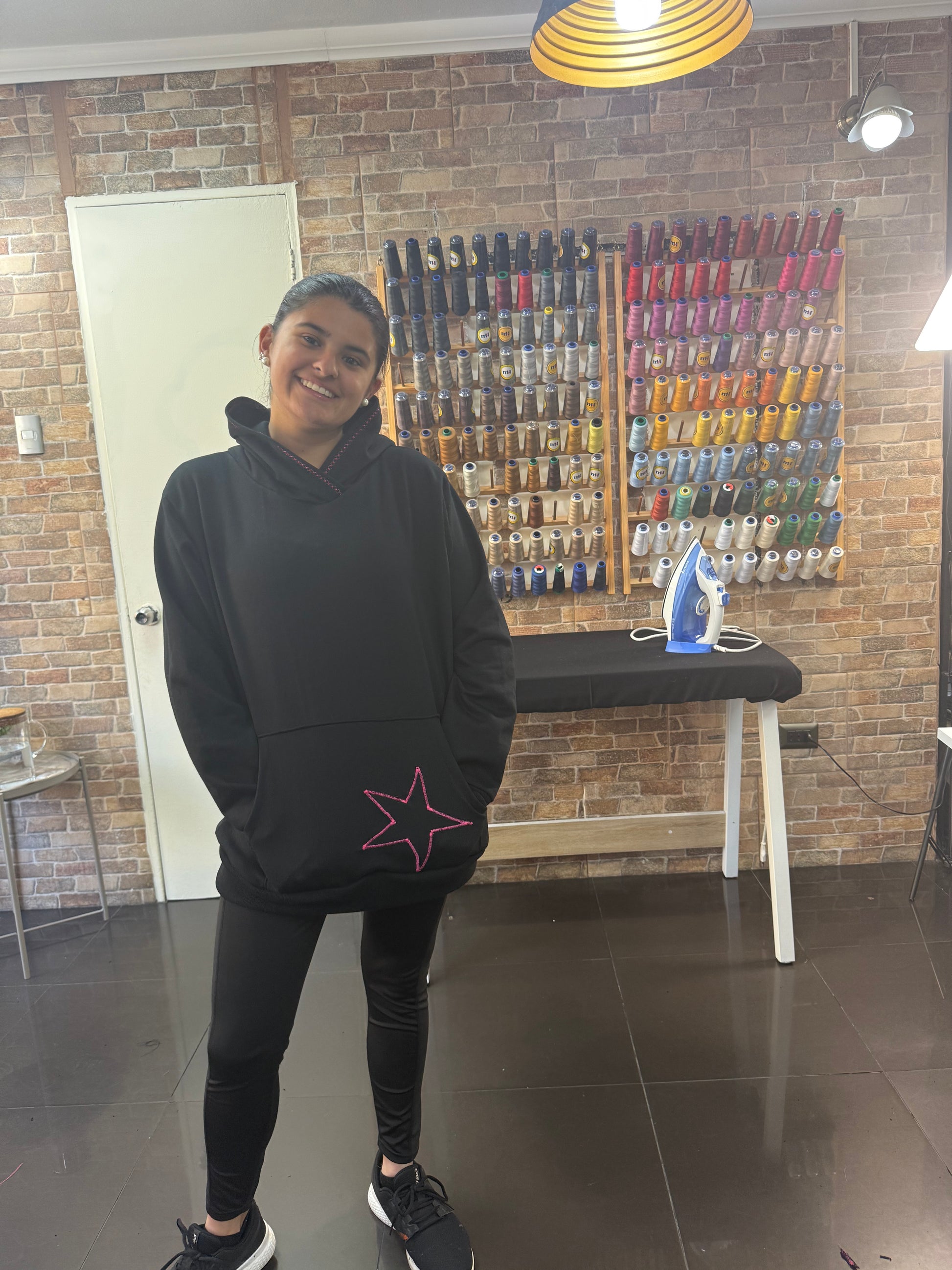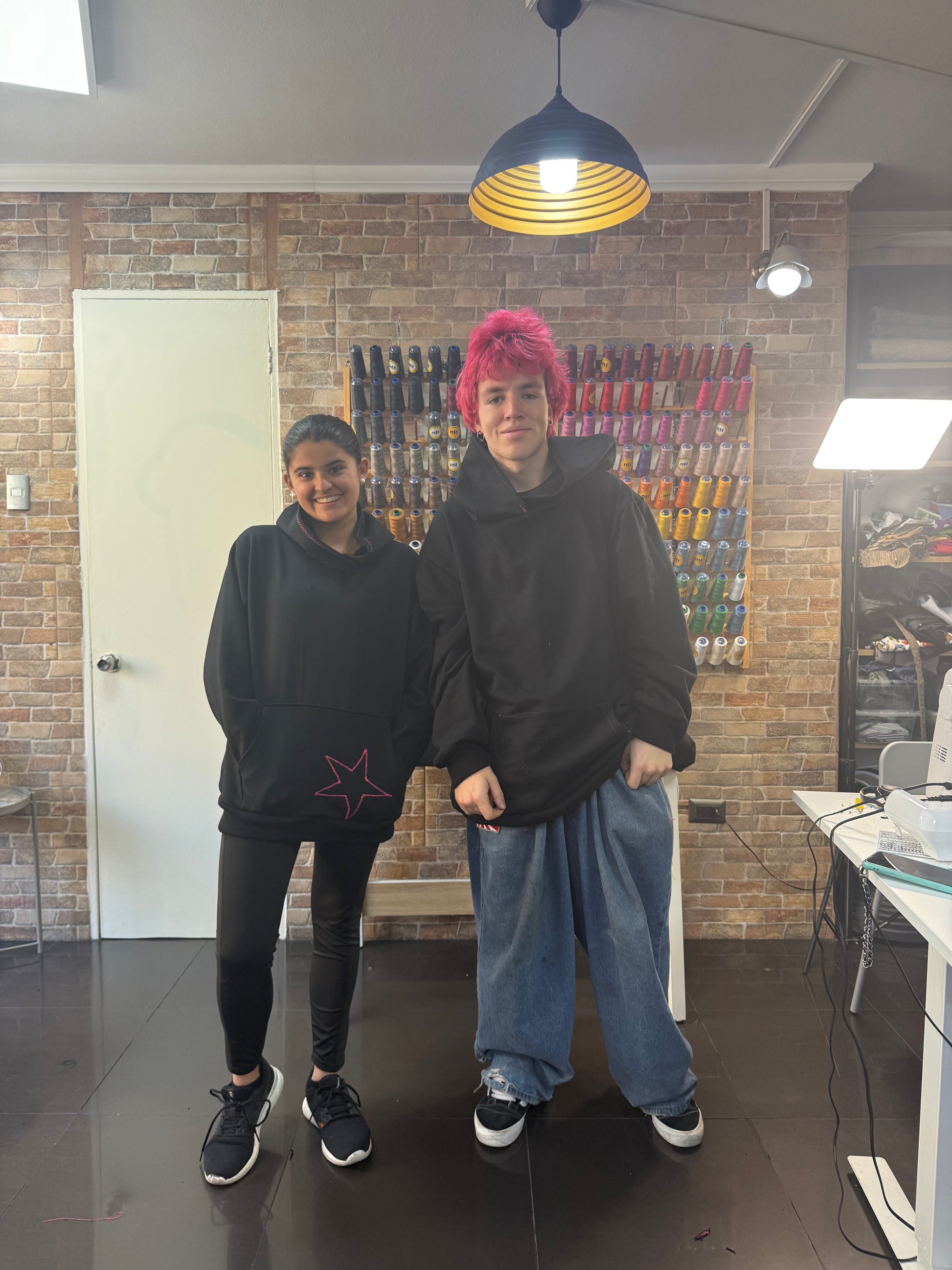 🎒 Materiales incluidos: Telas para la confección Franela Algodón negra y tela de puño; insumos de costura; y máquinas de coser. Usa nuestras máquinas o trae la tuya.